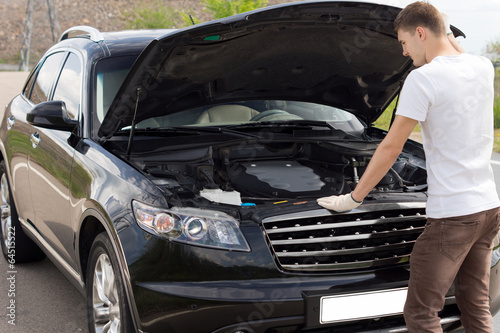 Male driver checking his car engine