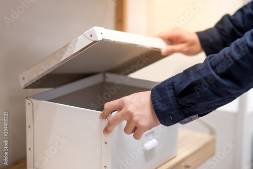 box, opening, open, hand, gift, male, present, concept, man, surprise, white, parcel, mail, delivery, service, holding, package, post, christmas, birthday, holiday, new year, inside, new, person, people, young, home, empty, shelf, design, blank, top, object, cap, decoration, decor, decorative, collection, keep