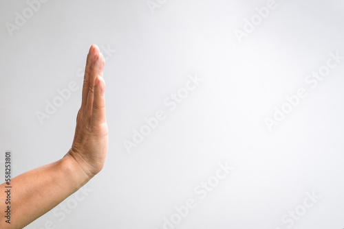 male, hand, stop, gesture, copy space, white background, banned, communicate, signs, warning, communication, concept, human, isolated, person, symbol, high five, palm, fingernail, business, people, idea, adult, body language, finger, greeting, closeup, hallo, forbidden, message, single, help, showing, no, negative