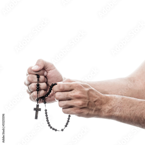 male hands praying with rosary