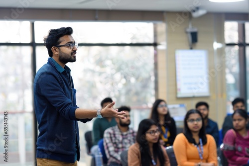 Male instructor speaking to students