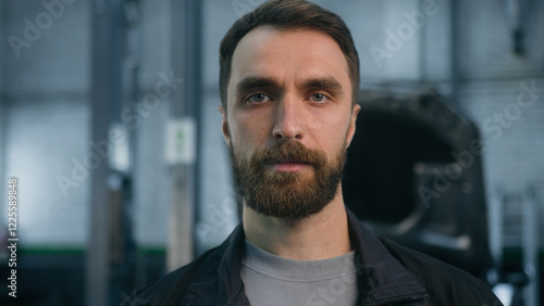 man, mechanic, engineer, industrial, men at work, male, portrait, caucasian, adult, guy, confident, serious, repairman, uniform, technician, electrician, specialist, automobile, diagnostic, car, service, bearded, auto, pose, posing, station, 30s, face, expression, repair, manufacture, business, work, factory, craftsman, engineering, automotive, garage, industry, machine, maintenance, manufacturing, mechanical, people, person, confidence, profession, professional, expert