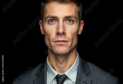 eye, human, art, photorealistic, sharp, shallow, neutral, space, illustration, partial, portrait, photo, image, even, body, male, depth, attire, visibility, insertion, highlight, field, expression, black, copy, soft, lighting, background, formal, people