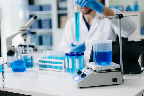 male scientist working with micro pipettes analyzing biochemical samples, advanced science