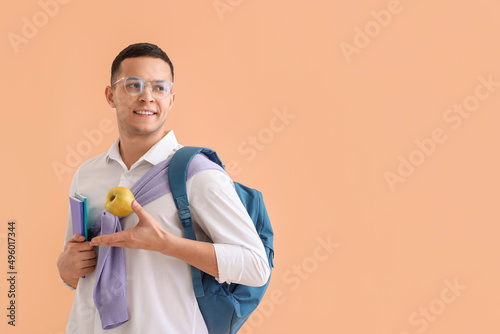 apple, attractive, background, backpack, beige, boy, caucasian, class, college, colours, copy, course, education, exam, exercise, eyeglass, food, guy, photogenic, higher, homework, cognition, learn, learning, lesson, lifestyle, male, man, notebook, people, person, portrait, school, smiling, space, student, study, studying, subject, task, teenage, tertiary, text, tutorial, university, young