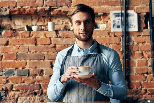 apron, bar, barista, barkeeper, barkeeper, beard, business, cafes, cafeteria, hot drink, concept, counter, cup, client, drink, entrepreneur, photogenic, happy, hipster, hispanic, holding, indoor, job, lifestyle, male, man, manager, middle, occupation, owner, people, person, portrait, pos, professional, pub, eatery, serving, shop, small, take-away, waiter, work, men at work, working