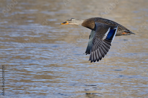 Mallard Duck Flying Low Over the River