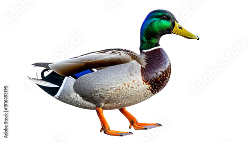 Mallard duck isolated on transparent background, high-quality PNG showing detailed feathers and natural posture, perfect for wildlife, nature, wetland, and bird designs.