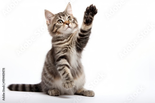 facial expression, domestic animals, white background, hi-res, domestic cat, downloadable, animal hair, arms raised, hand raised, studio shot, background, copy space, one animal, relaxation, tabby cat, isolated, portrait, whisker, animal, cut-out, yawning, felino, kitten, mammal, studio, waving, image, photo, white, body, cute, full, manx, shot, cat, pet, hd