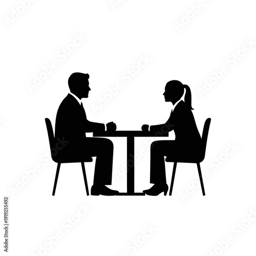 silhouette, man, woman, table, couple, people, business, meeting, discussion, conversation, adult, male, female, person, human, figure, chair, seated, sitting, facing, interaction, communication, professional, office, workspace, colleague, partner, team, duet, pair, friends, associate, client, client, consultation, negotiation, deal, agreements, contract, proposal, presentation, talk, chat, dialogue, exchange