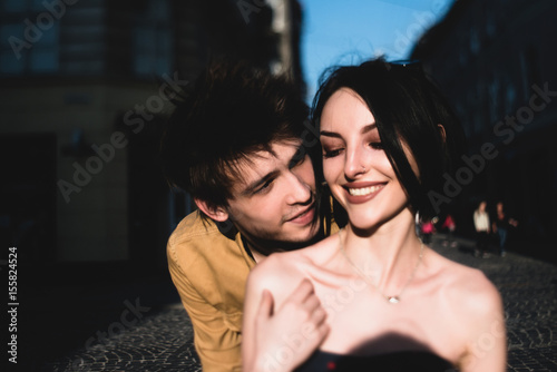 smiling, couple, young, love, male, woman, adult, people, human relationships, romance, man, happy, lifestyle, female, caucasian, together, man, smile, beautiful, cheerful, clothing, 2, casual attire, fun, sitting, affection, leisure, beard, bonding, happiness, togetherness, back, looking, design, day, beauty, outdoors, attractive, posing, human, expressing, fashion, heterosexual, woman, fashionable, femininity, elegance, sensuality, denim, camera