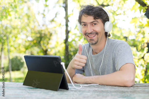 person, relaxation, park, nature, leisure, male, sitting, smiling, tree, wireless, technology, tablet, cyberspace, summer, computer, casual attire, day, adult, grass, happy, photogenic, guy, laptop, green, digital, caucasian, forest, light, man, smart, rest, sun, touch, natural, modern, portrait, beard, education, meadow, outdoors, sky, fun, wi-fi, young, spring, student, business, field