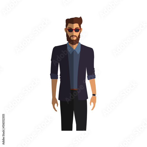 man cartoon with hipster style over white background. colorful design. vector illustration