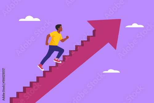 Man Climbing Up Arrow Steps