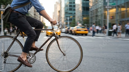 cycling, bicycle, bike, city, urban, commute, man, lifestyle, transportation, traffic, street, road, business, professional, sustainable, environmentally friendly, commuting, vintage, road bike, skyscraper, taxi, city life, activity, travel, movement, speed, fitness, health, environment, metropolitan, downtown, office worker, casual attire, male, person, action, morning, evening, sunlight, traffic jam, sidewalk, crosswalk, asphalt, city centre