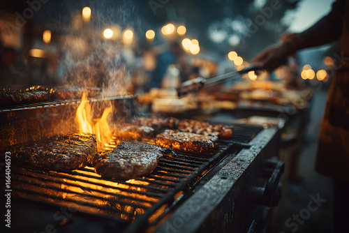 bar-b-q, meat, man, grill, cooking, steak, summer, chef, flipping, sausage, roasting, burger, party, chicken, social, plate, event, fire, food, hot, guest, friends, gathering, tongs, warm, flames, lawn, freshness, relaxation, backyard, happiness, utensil, leisure, casual attire, fun, aroma, charcoal, patio, garden, enjoyment, apron, smoke, festive, sunny