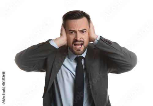 adult, annoyed, annoying, audible, background, caucasian, close, closed, closing, conflict, cover, covering, deaf, ear, gesture, hear, hearing, ignoring, insulation, irritation, isolated, listen, loud, loudness, male, man, model, noise, noisiness, noisy, person, portrait, posing, problem, sound, stress, stressed, studio, suffer, suffering, volume, white