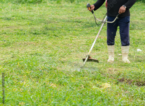 lawn mower, man, gardening, lawn, machine, person, mowing, cutting, equipment, grass, outdoors, trimmer, garden, men at work, engine, gasoline, meadow, occupation, service, string, tool, working, farmer, work, care, gardener, trimming, cutter, field, nature, park, summer, wild plant, job, motor, one person, power, safety, trim, uniform, backyard, electric, mow, cut, technology, green, sunny, closeup, day