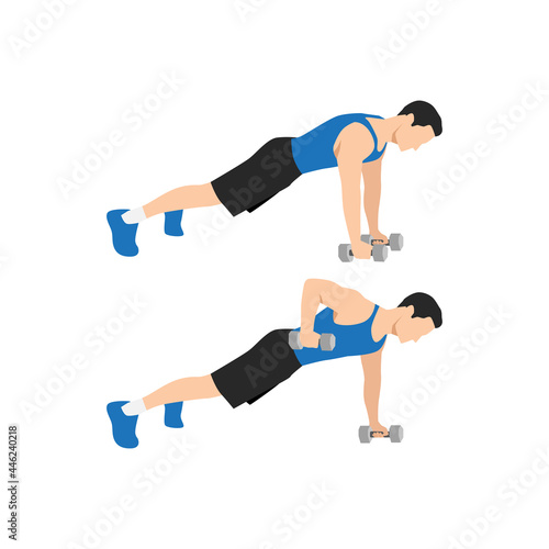 Man doing Renegade.Alternating plank. Commando Rows exercise. Flat vector illustration isolated on white background