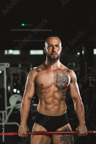 man, exercising, gym, physical exercise, barbell, weight, cross, training, routine, strong, bodybuilder, concentration, exercise, effort, hard, muscle, fit, body, muscular, back, chest, six-pack, arm, bicep, photogenic, young, adult, active, athlete, healthy lifestyle, sport, strength, male, power, vertical, copy space, fitness, muscle, guy, bodybuilding, macho