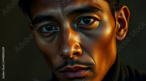 man, look, dramatic, artistic, dark, portrait, face, eye, skin, shadow, head, moustache, ear, neck, shoulder, black, brown, serious, indoor, display