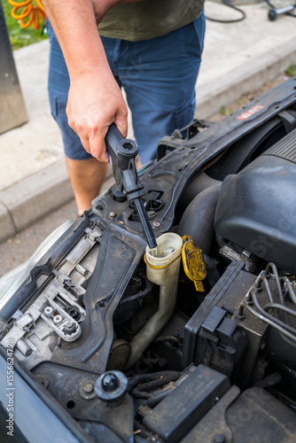 auto, automobile, automotive, car, checking, engine, fluid, liquid, water, vehicle, filling, hand, level, wet, cooling, outdoors, transport, male, transportation, tank, service, repair, work, windscreen, wiper, mechanic, man, maintenance, windscreen, person, plastic, radiator, cleaning, fill, glasses, nozzle, washer, laundered, spray, routine, washing, pouring, pour, safety