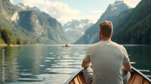 man, boat, fishing, lake, mountain, sunset, water, nature, calmness, adventure, leisure, coast, scenery, cloud, calm, travel, vacation, landscape, relaxation, wooden, angling, twilight, wilderness, serene, solitude, vibrant, exploration, recreation, sport, beauty, scenic, horizon, peaceful, kayak, rod, fisherman, summer, activity, wildlife, camping, hobby