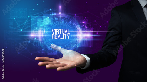 Man hand holding digital technology concept