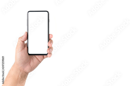 Man hand holding smartphone with blank screen
