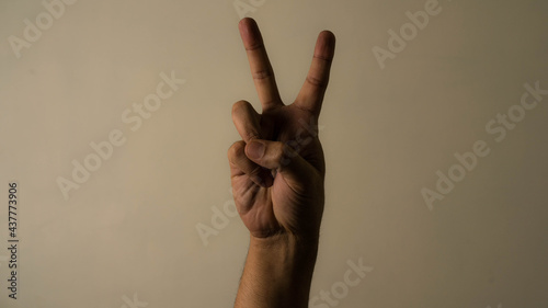 man hands making common and youth trend gesture and signs of peace love and fight and science fiction