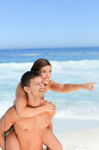 Man having wife a piggyback on the beach