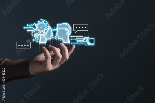 man holding command prompt ai chat. Big data storage.Digital Artificial Intelligence (AI) technology disruption concept. We are implementing storage technology support in the business.