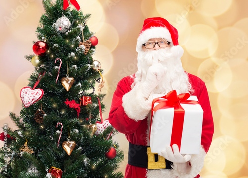 smiling, santa, claus, christmas, holiday, gift, box, present, saint, saint nicholas, red, party, man, senior, people, person, elderly, happy, surprise, cheerful, mature, aged, christmas, christmas, december, winter, celebration, male, background, carnival, costume, beard, belt, hat, old, season, tradition, merry, goggles, traditional, seasonal, tree, decorated, gesture, secret, hush, silence, mute, light, beige