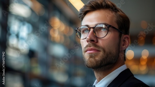 man in glasses with a pen at a board with graphs