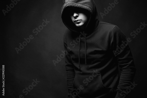 Man in Hood. Boy in a hooded sweatshirt