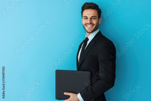 successful, entrepreneur, executive, employee, manager, suit, career, smart, stylish, confident, indoor, man, guy, photogenic, job, laptop, smile, standing, corporate, professional, office, male, businessman, person, looking, work, computer, happy, portrait, business, technology, holding, white, young, caucasian, modern, adult, cheerful