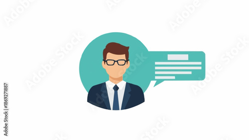 man, suit, attaching, goggles, speech, bubble, communication, dialogue, icon, illustration, business, professional, conversation, message, chat, support, client, service, feedback, opinion, idea, information, discussion, meeting, consultation, advice, help, question, answer, response, network, connection, online, digital, graphic, vector, flat, design, concept, symbol, representation, person, male, user, profile, head shot, avatar