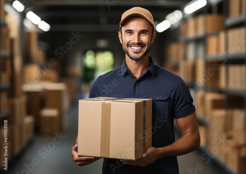 box, warehouse, delivery man, people, men at work, businessman, business, carrying, smiling, cardboard, student, package, shipping, work, guy, man, job, moving, education, library, standing, courier, parcel