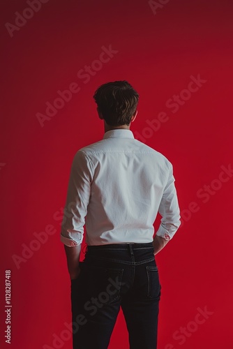 man, fashion, posed, shirt, bold, photo, studio, aesthetic, vibrant, contemporary, visual, elegance, simplicity, minimalist, sharpened, silhouette, perspective, unique, chic, dynamic, identity, innovation, impression, capture, striking, attire, character, trendy, profile, body