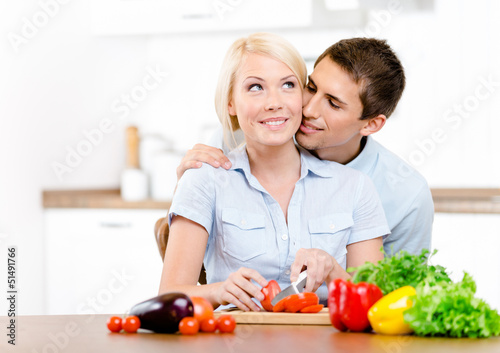 human relationships, full, girl, blond, beautiful, woman, horizontal, caucasian, two people, man, food, people, young, couple, hair, cute, love, beauty, portrait, table, kitchen, female, fruit, male, care, adult, smile, healthy, eating, long, 2, diet, smiling, pretty, brown, fresh, sitting, weight, breakfast, meal, meal, attractive, long hair, kiss, cook, brown hair, vegetable, blonde hair, nourishment, knife
