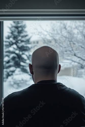 winter, snow, man, outdoors, view, gaze, indoor, cold, frosty, landscape, scenic, scenery, window, outside, weather, climate