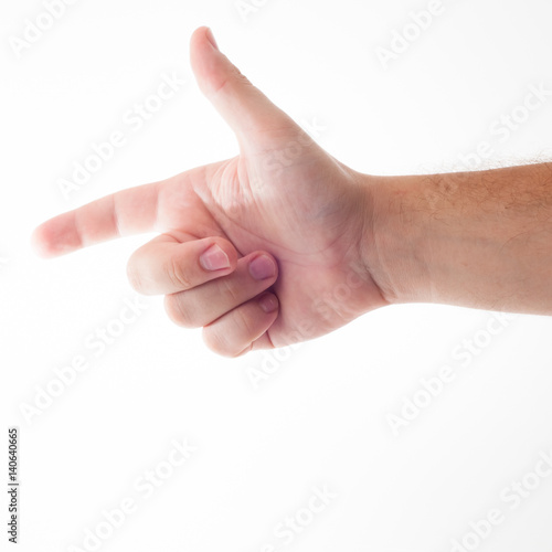 Man make symbol of gun by fingers