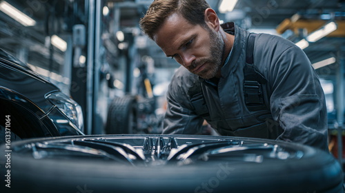 car, mechanic, man, repair, factory, automobile, industrial, plant, engineer, wheel, work, machine, male, caucasian, professional, men at work, tied-up, detail, auto, service, inspection, workshop, garage, automotive, maintenance, metal, vehicle, part, job, shop, motor, blue, modern, industry, commercial, business, serious, close, condensed, sharpened, concentrated, working, skilled, technical, tool, technician, engine, production, line