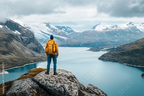 mountain, hiking, nature, hiker, landscape, trekking, mountain, adventure, rock, lake, woman, travel, sky, hike, backpack, view, people, snow, top, sport, holiday maker, peak, walking, summer, active