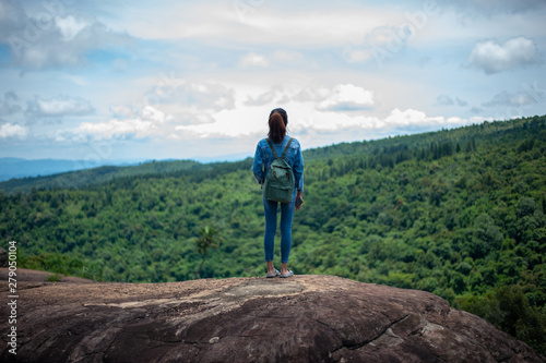 mountain, hiking, nature, landscape, sky, travel, view, hill, top, young, person, blue, holiday maker, people, adventure, hiker, mountain, woman, peak, trekking, rock, sport, hike, walk