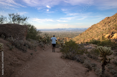 Man Running On Pinnacle Peak Desert Trail In Scottsdale AZ Morning Time