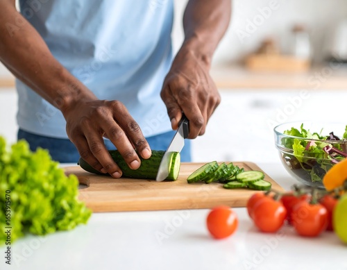 Man slicing cucumber in kitchen (1)