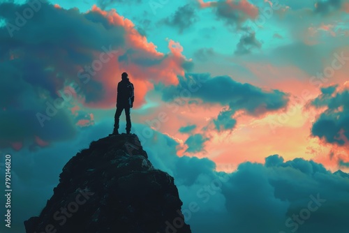 man, standing, mountain, peak, cloudy sky, rocky, summit, confident, landscape, horizon, view, adventure, hiker, exploring, nature, explorer, hiking, mountaineer, cloud cover, weather, cloudy, cloudy day, altitude, achievement, determination, bold, rugged, challenging, accomplishment, triumph, success, wilderness, conquering, conqueror, extreme, atmosphere, overcast, dramatic