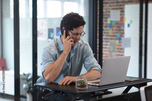 people, real people, on the phone, phone call, talking, smartphone, mobile phone, technology, phone, using, communication, interact, computer, laptop, business, job, occupation, work, working, distance, pandemic, epidemic, health, protection, global, outbreak, contagious, contagion, safety, care, disease, infection, agency, company, casual attire, office, workplace, modern
