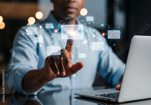 electronic mail, communication, digital, technology, laptop, touch screen, inbox, cyberspace, message, virtual, interface, datum, media, software, professional, connection, user, mail, modern, business, hand, device, online, notification, icon, click, workspace, work, innovation, interaction